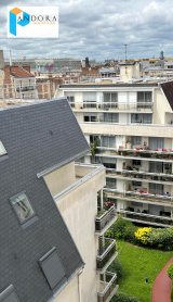 Beau studio au 6ème étage sans ascenceur entièrement refait à neuf, entrée avec rangement, salle d'eau avec WC, séjour avec vue dégagée au calme, cuisine.