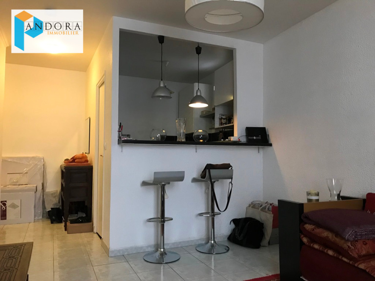 2 pièces de 38 m² en parfait état, comprenant une entrée, séjour, cuisine équipée, chambre, salle d'eau avec wc et cave en sous-sol. Très calme.