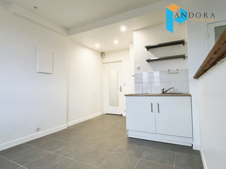 Charmant studio de 24 m² comprenant une pièce principale avec cuisine ouverte, coin chambre, une salle d’eau, wc indépendants et une cave en sous-sol.